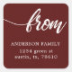brush script return address family burgundy square sticker