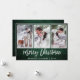 Rustic Green Wood Brush Script 3 Photo Merry Christmas Card