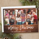 Modern Brush Script Rustic Wood 3 Photo Family Photo Merry Christmas Holiday Card