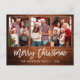 Modern Brush Script Rustic Wood 3 Photo Family Photo Merry Christmas Holiday Postcard