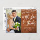 Brush Script Rustic Wood Love and Thanks Wedding Postcard