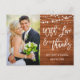Modern Brush Script, Rustic Wood and String Lights, With Love and Thanks Wedding Photo Thank You Postcard