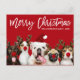 Brush Script Star Merry Christmas Dogs Red Postcard