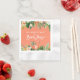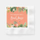 Modern Brush Script, Watercolor Tropical Coral Floral, Flamingo, Family Name Beach House Paper Cocktail Napkins