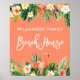 Modern Brush Script Tropical Coral Floral Beach House Poster with Flamingo