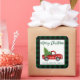 Brush Script Watercolor Red Vintage Truck with Christmas Tree - Merry Christmas Family Name Sticker - Green Plaid