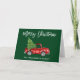 Brush Script Watercolor Vintage Red Truck with Christmas Tree - Merry Christmas Green Folded Card