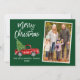 Brush Script Vintage Truck Photo Christmas Green Holiday Card