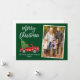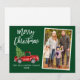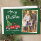 Modern Brush Script Watercolor Vintage Red Truck with Christmas Tree - Merry Christmas Family Photo Green Holiday Card