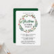 Modern Brush Script Watercolor Winter Greenery Wreath Christmas Dinner Party Invitation includes botanical greenery and holly berries - Green Script, Forest Green Back