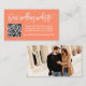 Modern Brush Script. Minimalist Simple Wedding Website Enclosure Card with your QR Code. Photo Back. Coral