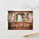 Modern Brush Script Change The Date Wedding Postponed New Date Announcement Couple 3 Photo Postcard - Rustic Wood