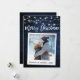 Modern Brush Script, Instant Camera Style Photo Merry Christmas Card - Rustic Blue Wood