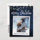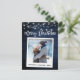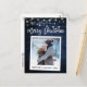 Modern Brush Script, Instant Camera Style Photo Merry Christmas Postcard - Rustic Blue Wood