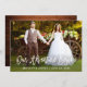 Modern Brush Script Wedding Photo Thank You Card, Our Adventure Begins, White Script, Rustic Wood Back