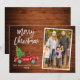 Brush Script Wood Vintage Truck Photo Christmas Holiday Card