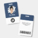 Easily personalise this Custom Brush Stroke Employee Name Badge with Photo, Scan Bar Code and business logo. A creative business design in navy blue and white colours with employee photo into brush stroke shape, fully customisable, in front and back sizes, sans-serif basic and modern fonts and a professional and clear look. Avaiable with lanyard, metal clip or with retractable. No minimum order.