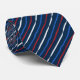 Red, White, Blue & Navy Colorway. Random hand painted brush strokes make up this original painterly pinstriped necktie. A four colour textile design. An navy blue ground with ocean blue, red and white.