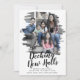 This brushed decking new halls moving announcement holiday card is the perfect simple holiday greeting and to announce your new address. The unique and artistic design features your photo in watercolor painted brush strokes with modern calligraphy in black and white. Personalise the card with your family photo, names and year on the front and your new address on the back.