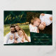 Elegant holiday photo card featuring "Merry" in a gold foil calligraphy script on a painted green plaid background. Personalise the front by adding two of your favourite photos, a greeting, name, and year. The rustic gold foil Christmas card reverses to display an additional photo with a snowy green plaid background.
