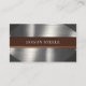 This sleek business card combines brushed metal panels with a bold brown accent stripe, creating a refined yet industrial design. Perfect for construction professionals, engineers, or tradesmen seeking a professional and durable look. Customise the text to showcase your expertise and leave a lasting impression on clients.