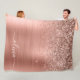 Brushed Metal Rose Gold Pink Glitter Monogram Fleece Blanket