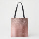 Brushed Metal Rose Gold Pink Glitter Monogram Tote Bag