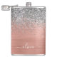 Brushed Metal Rose Gold Silver Glitter Monogram Hip Flask