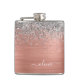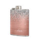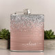 Brushed Metal Rose Gold Silver Glitter Monogram Hip Flask