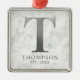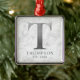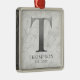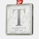 Monogrammed initial T wedding anniversary premium square ornament for with a faux ombre coloured silver brushed metallic foil digital art overlay.