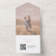 A modern photo wedding invitation with a white paint brush style border and traditional elegant typography.