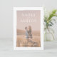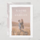 A modern photo wedding invitation with a white paint brush style border and traditional elegant typography.