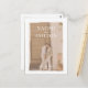 A modern photo wedding invitation with a white paint brush style border and traditional elegant typography.