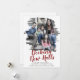 This brushed red decking new halls moving announcement holiday card is the perfect simple holiday greeting and to announce your new address. The unique and artistic design features your photo in watercolor painted brush strokes with modern calligraphy in red and white. Personalise the card with your family photo, names and year on the front and your new address on the back.