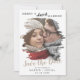 This brushed tan merry and almost married save the date holiday card is the perfect simple holiday greeting for an engaged couple. The unique and artistic design features your photo in watercolor painted brush strokes with modern calligraphy in beige and white. Personalise the card with your engagement photo, names, wedding date.