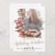 This brushed tan warm holiday wishes engagement photo card is the perfect simple holiday greeting for an engaged couple. The unique and artistic design features your photo in watercolor painted brush strokes with modern calligraphy in beige and white.