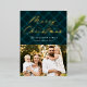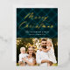 Brushed Teal Plaid Merry Christmas 3 Photo Foil Holiday Card