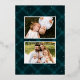 Elegant holiday photo card featuring "Merry Christmas" displayed in a gold foil calligraphy script at the top of the design on a painted teal plaid background. Personalize the front of the card by adding your name, year, and a photo. The gold foil Christmas card reverses to display 2 additional photos on a matching plaid background with subtle white snow dots. The multi-photo Christmas card is perfect for displaying your favorite family photos!