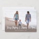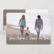 Send stylish joyful greetings and share two of your favourite pictures with a unique custom photo holiday card. All text on this template is simple to personalise to include any wording, such as Merry Christmas, Happy Holidays, Seasons Greetings, New Year Cheers etc. (IMAGE PLACEMENT TIP: An easy way to centre a photo exactly how you want is to crop it before uploading to the Zazzle website.) The modern minimalist black and white design features trendy handwritten style script typography overlay and 2 pictures of your choice. Family and friends will love displaying this elegant customised card. Merry Christmas & Happy New Year!
