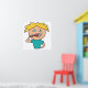 Brushing Teeth design shows a child brushing teeth with red toothbrush and a big toothy grin.  Part of regular after meal before bedtime teeth maintenance - important for good dental care and oral hygiene.  Help get the teeth cleaning message across with this fun graphic and make dentist visits fun.