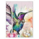 A brushstroke-style design featuring a vibrant hummingbird adorned with a spotted bow tie, its wings fluttering as it hovers gracefully above a nest fille