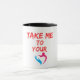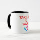 This ceramic mug features the bold and motivational slogan “TAKE ME TO YOUR” in striking red and orange brushstroke-style lettering. Below the text, a blue brushstroke and an abstract human figure forming a heart shape add a touch of warmth and creativity. Perfect for those who value care and love, this mug is a great addition to any kitchen or office.