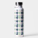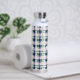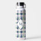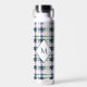 Brushstroke Navy Blue Preppy Plaid Monogrammed Water Bottle