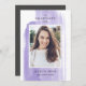 This graduation card announcement features a pretty minimal desiign with watercolor brushstrokes in watercolor Purple with a room for a vertical senior picture of your beautiful grad! Personalize the card adding your photo, name and year. Add an extra message on the back using the template.