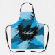 Brushstrokes shades of blue name with monogram apron