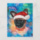Brussels Griffon Breed Dog Christmas features a watercolor of a Brussels Griffon with a red Santa's Hat, a red Christmas collar, and a galaxy watercolor.