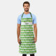 An apron with a Brussels sprout pattern and a customizable name. The apron has a green and white color scheme.