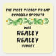 The first person to eat brussels sprouts was REALLY, REALLY hungry text with a row of brussels sprouts is a humourous gift design for those who find the green vegetable morsels less than tasty.