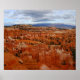 Bryce Canyon which, despite its name, is not a canyon but a giant natural amphitheater created by erosion along the eastern side of the Paunsaugunt Plateau in Utah. Bryce is distinctive due to geological structures called hoodoos, formed by wind, water, and ice erosion of the river and lake bed sedimentary rocks. The red, orange, and white colors of the rocks provide spectacular views for park visitors. This is a lovely digital painting of one of my Bryce photographs.