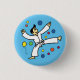 A Martial Arts boy in white gi uniform kicks among bubble and balloons on this collectable pin-back button. We have over one hundred Karate, Taekwondo, and other style Martial Arts buttons.